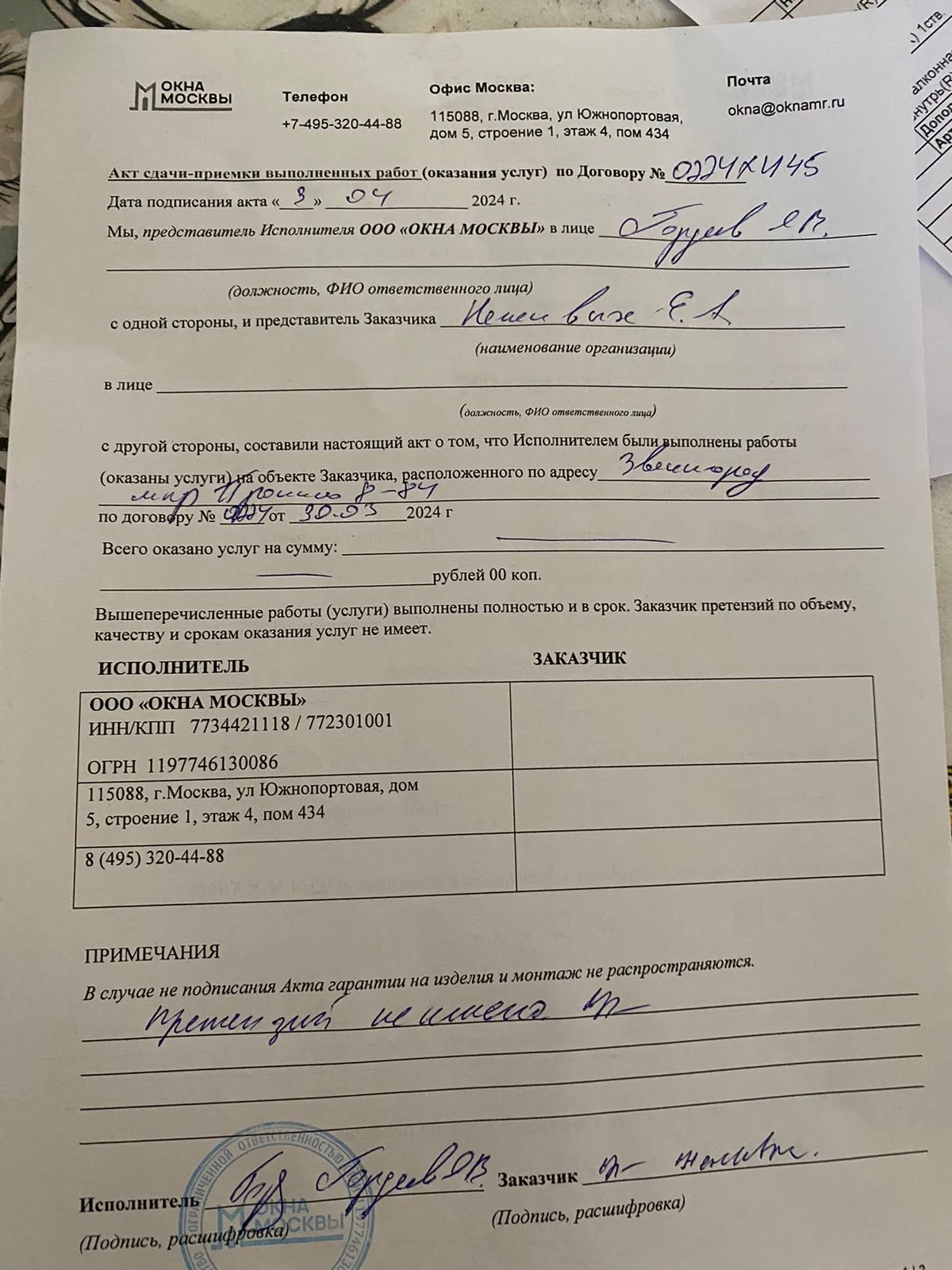Выполненные работы