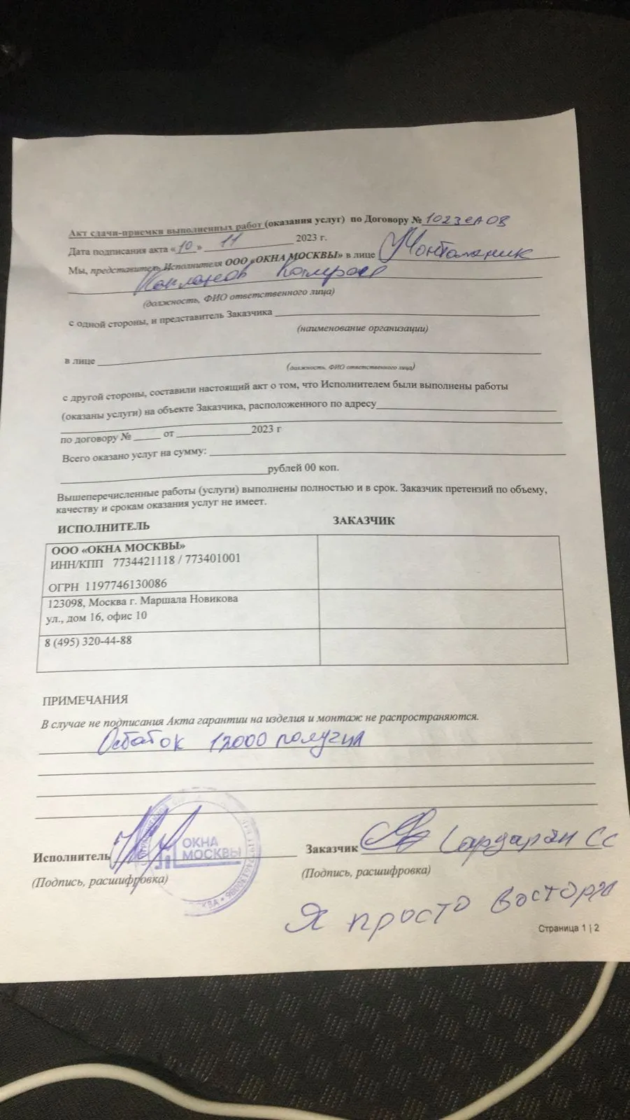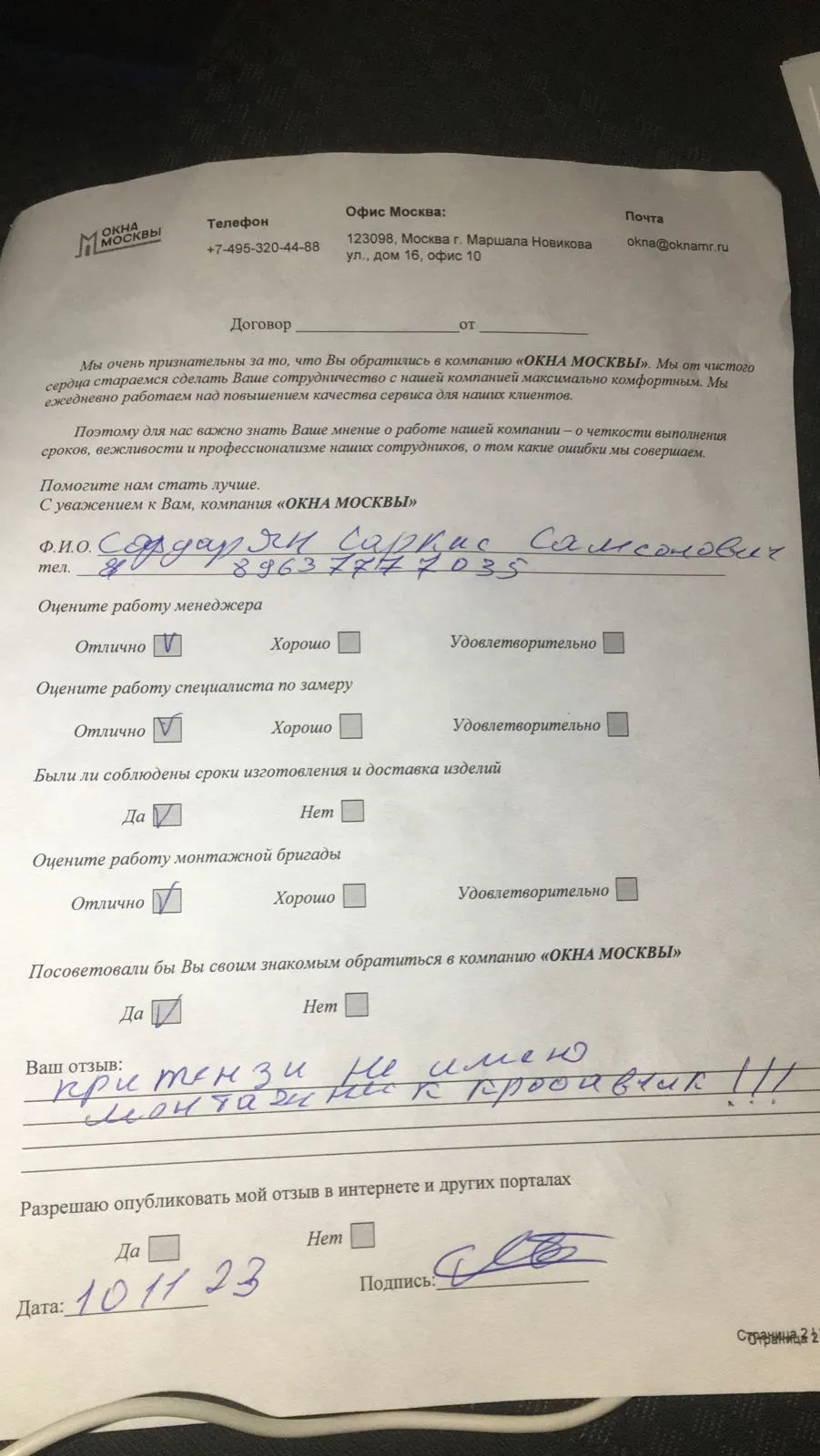 «Претензий не имею, монтажник красавчик.»