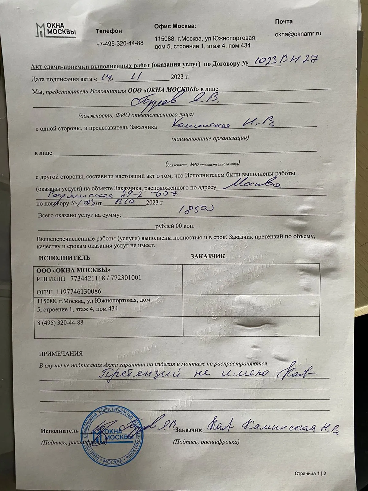 Выполненные работы