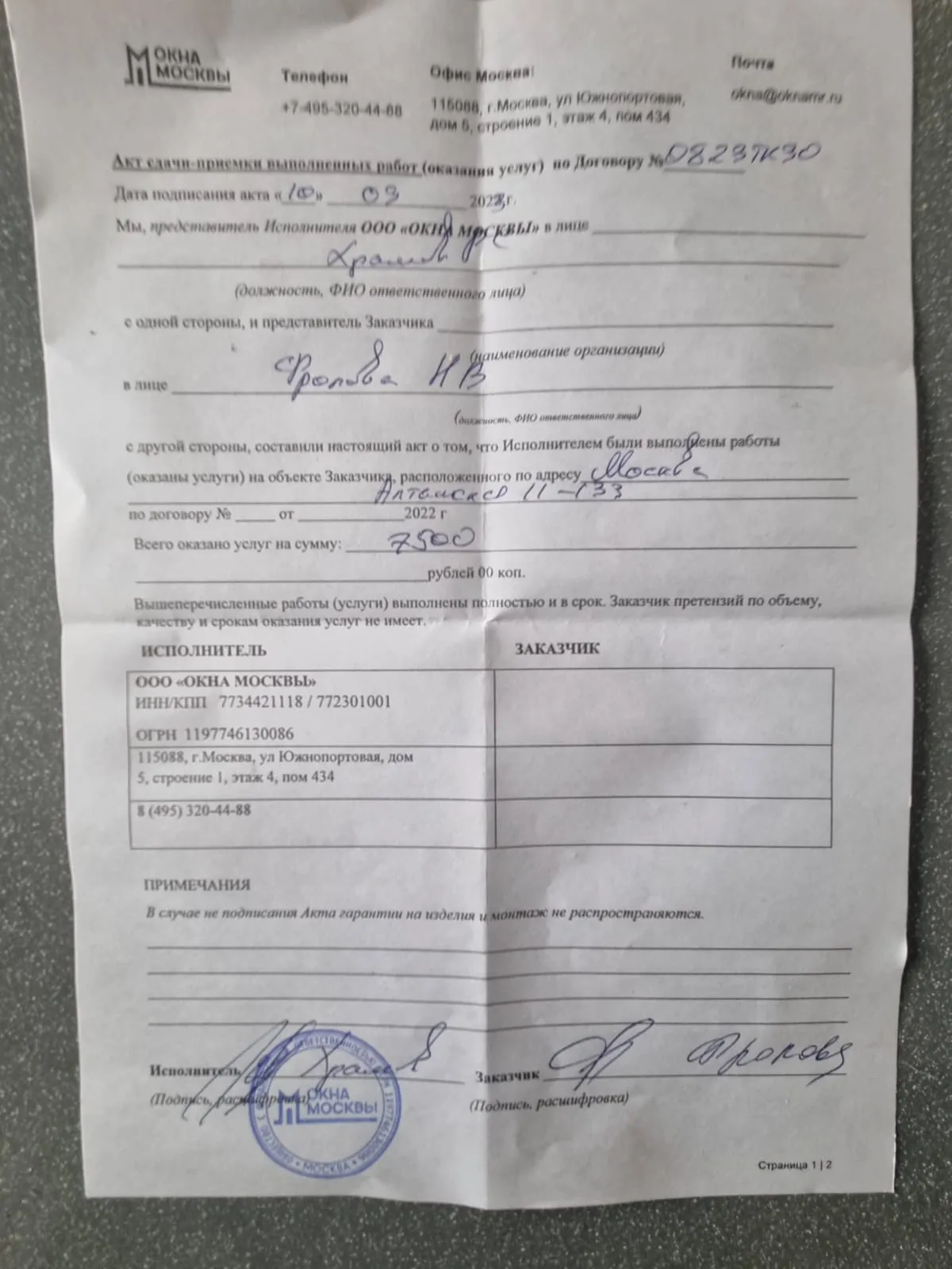 «Спасибо за вашу работу!Все выполнили быстро и чисто»