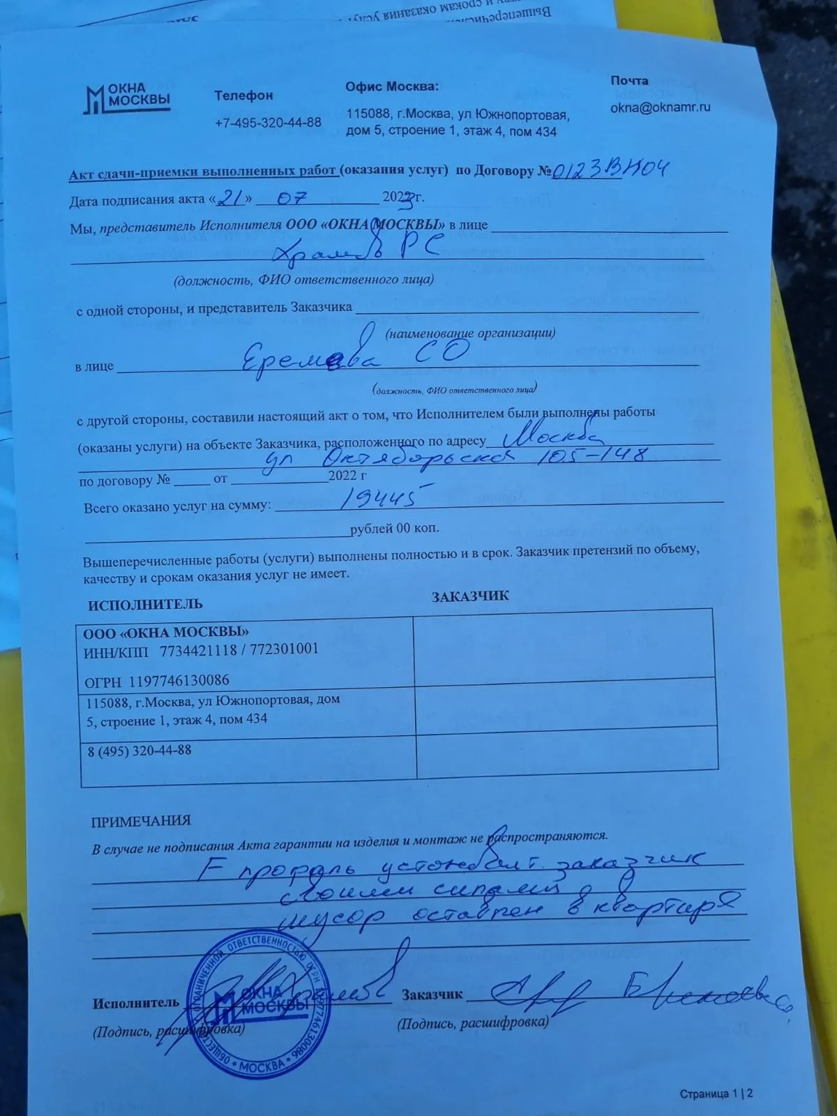 «Монтаж был выполнен очень чисто и аккуратно.»