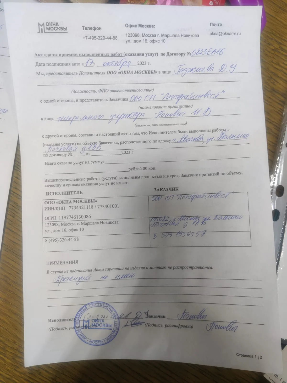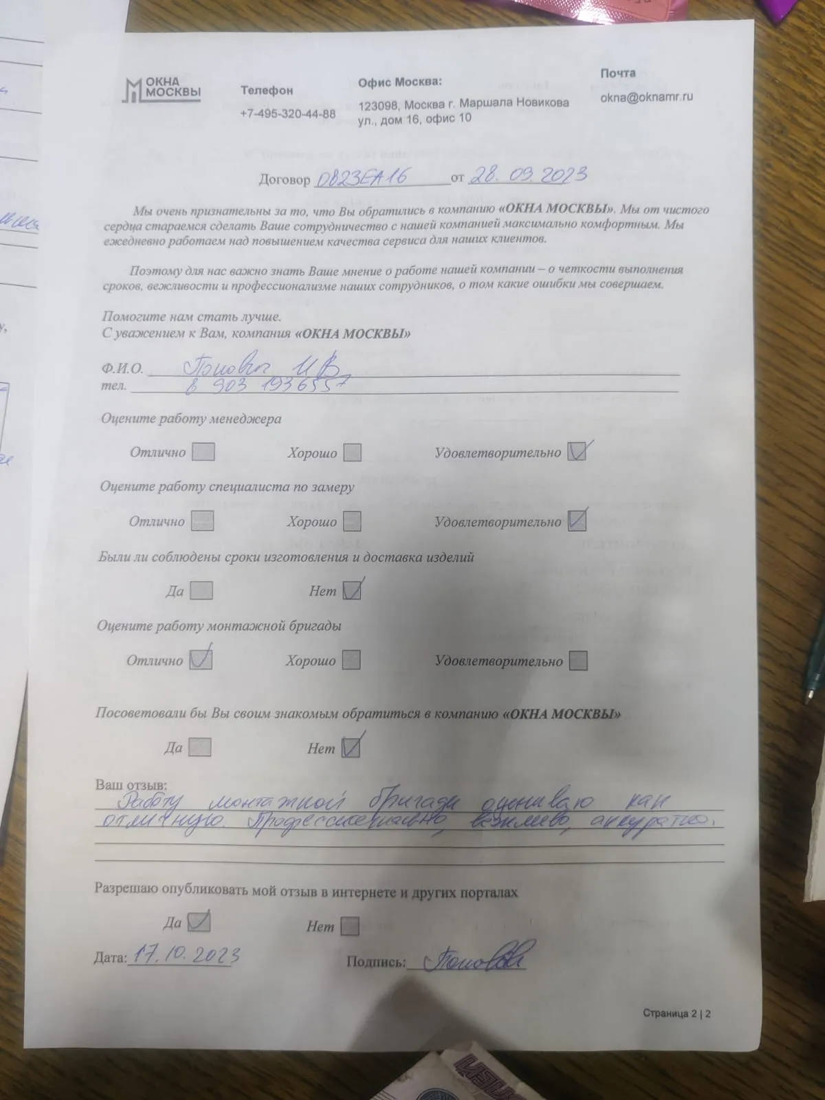 «Работу монтажников оцениваю как отличную.»