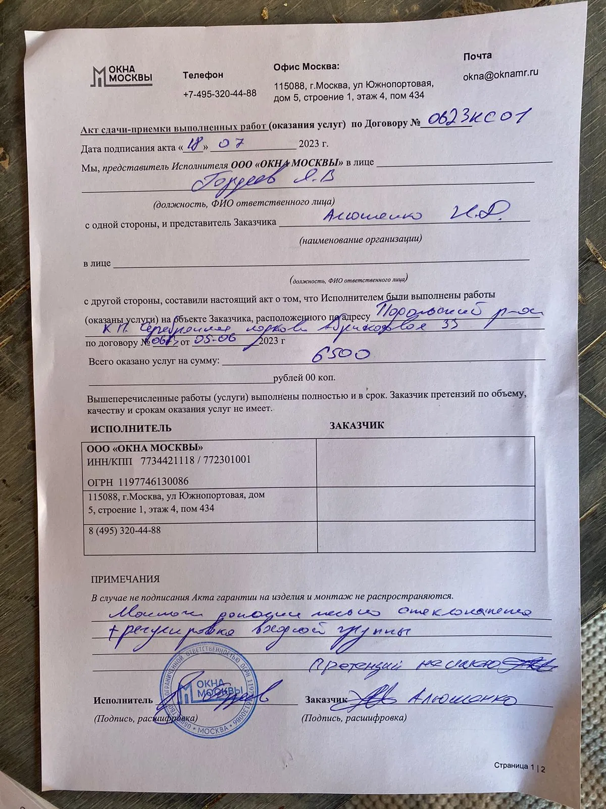 » Претензий не имею.»