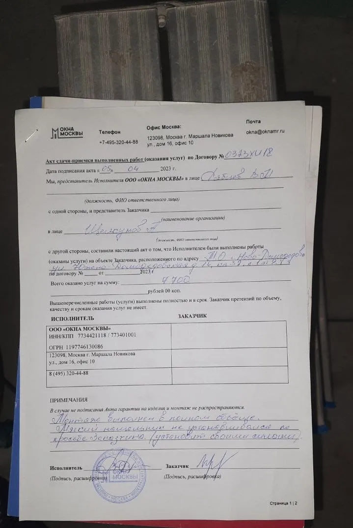 «Монтаж выполнен в полном объеме.»
