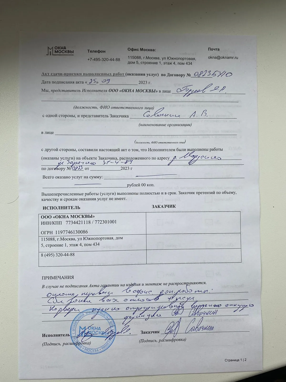 «Идеально выполнена работа, остались довольны.»