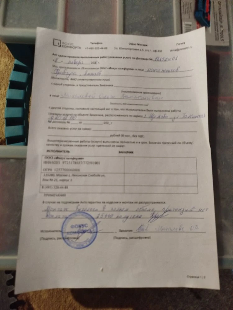 «Монтаж выполнен в полном объёме. Претензий нет»