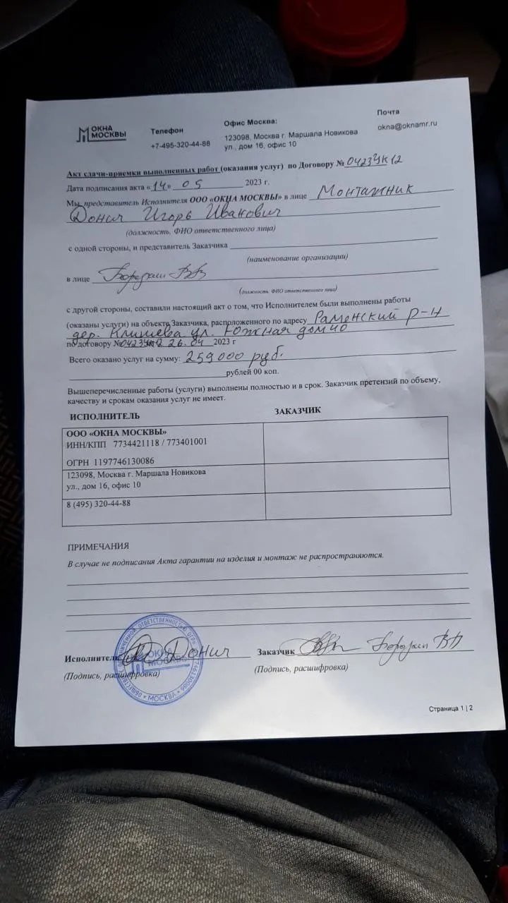 «Монтажники были очень профессиональны.Спасибо!»