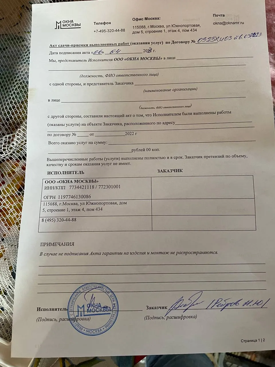 Выполненные работы