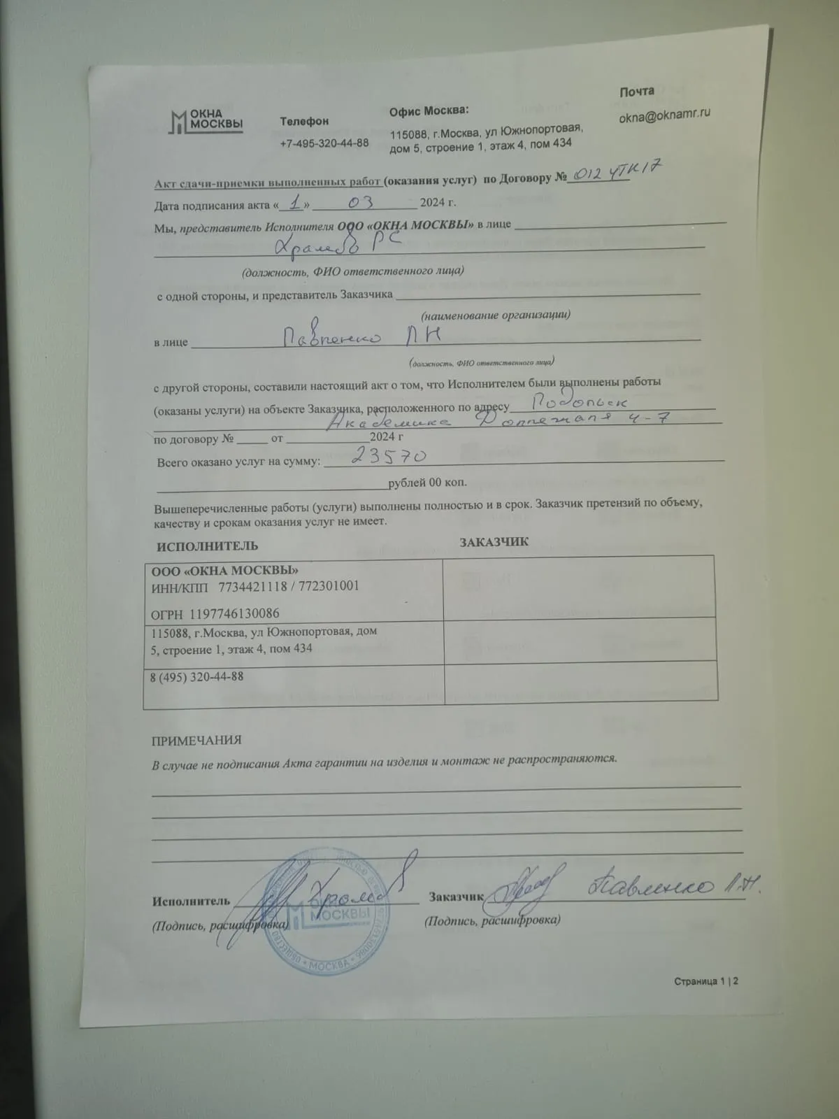 «Мастерам огромное спасибо, никаких минусов не заметили.»