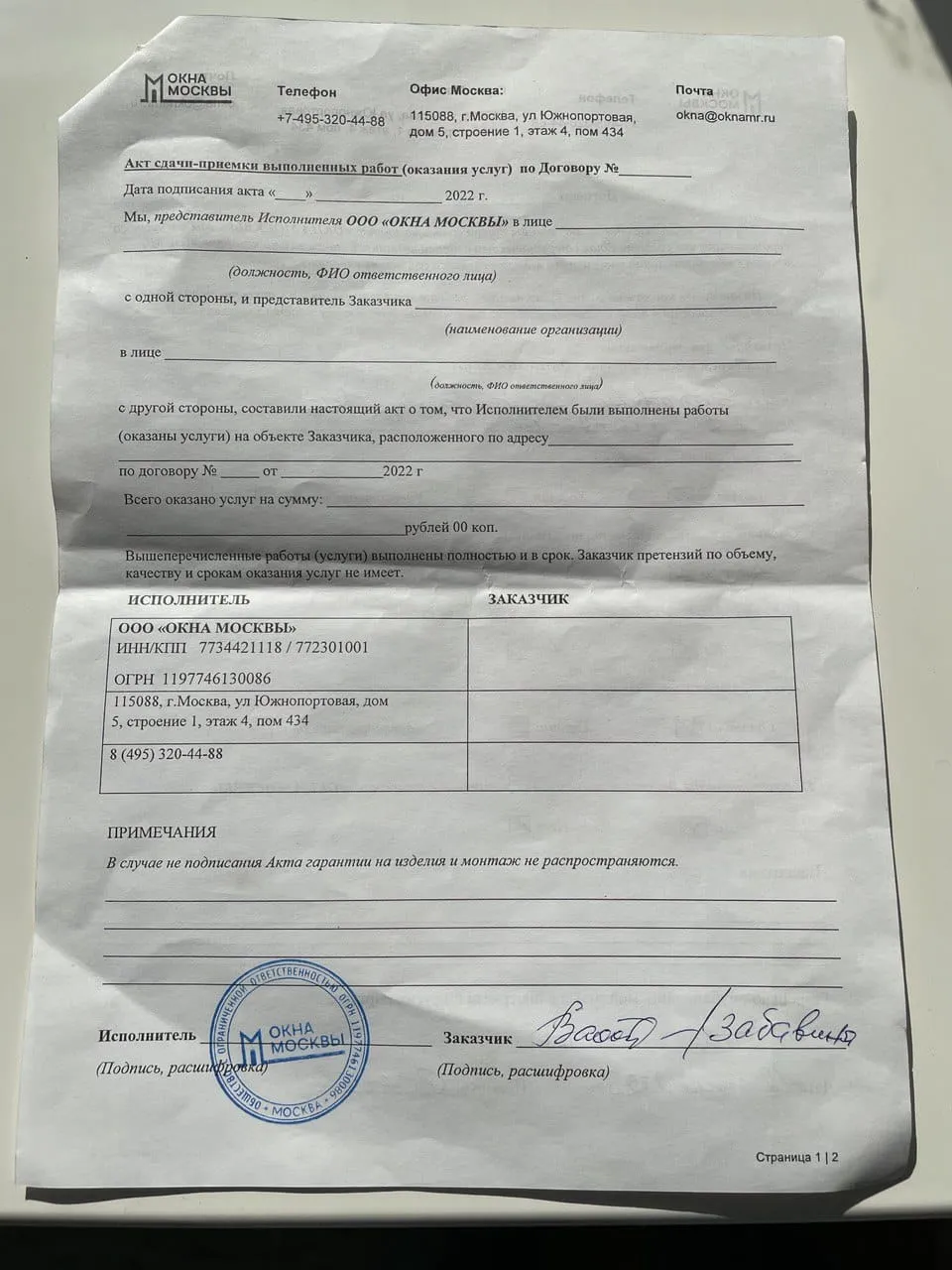 Выполненные работы