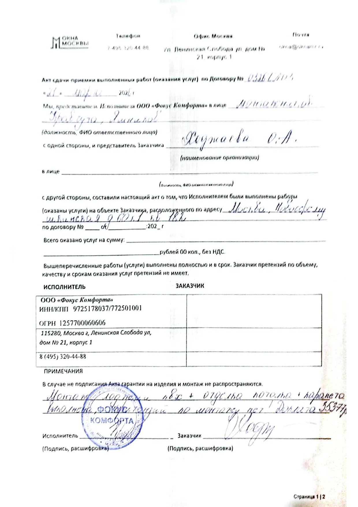 «Все выполнили, претензий к отделке и монтажу не имею»