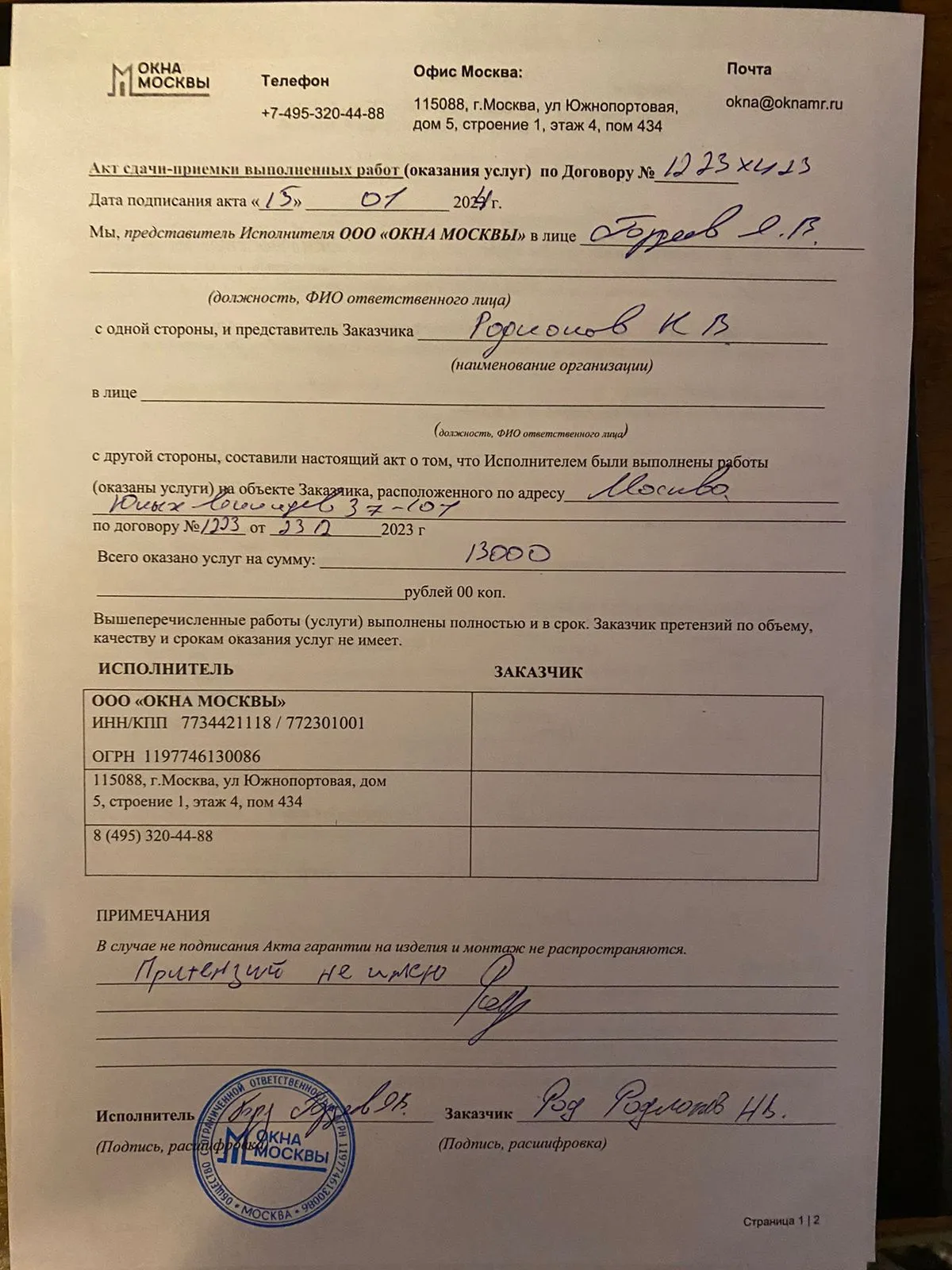 Сумма работ: 105 000р.