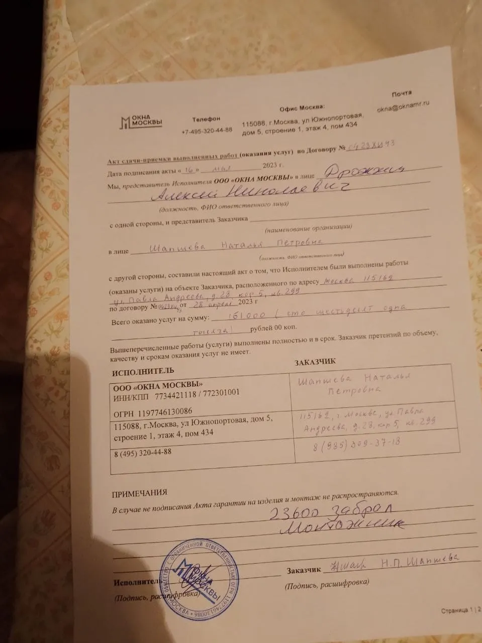 Сумма работ: 168 600р.