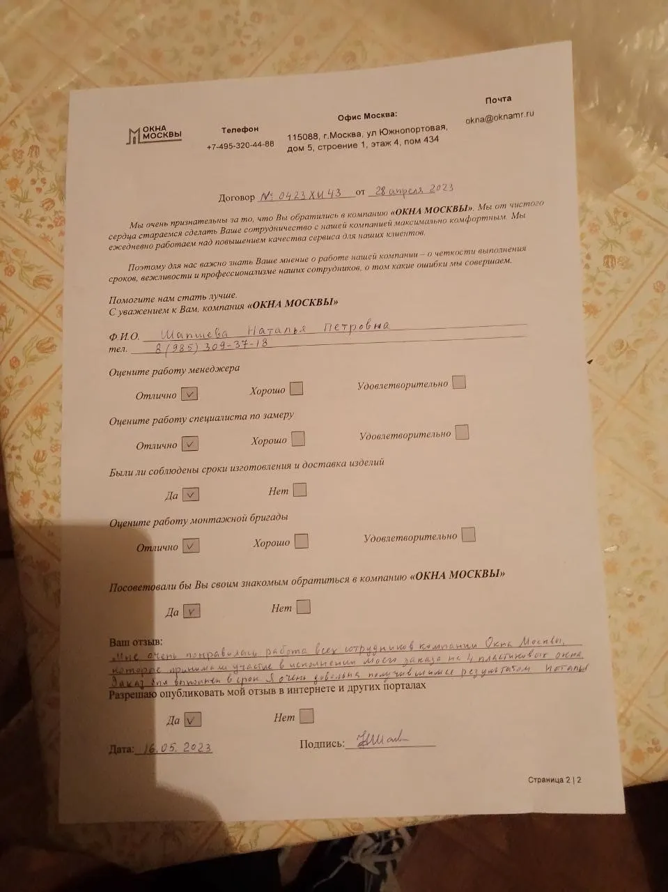 «Заказ был выполнен в срок. Я очень довольна.»