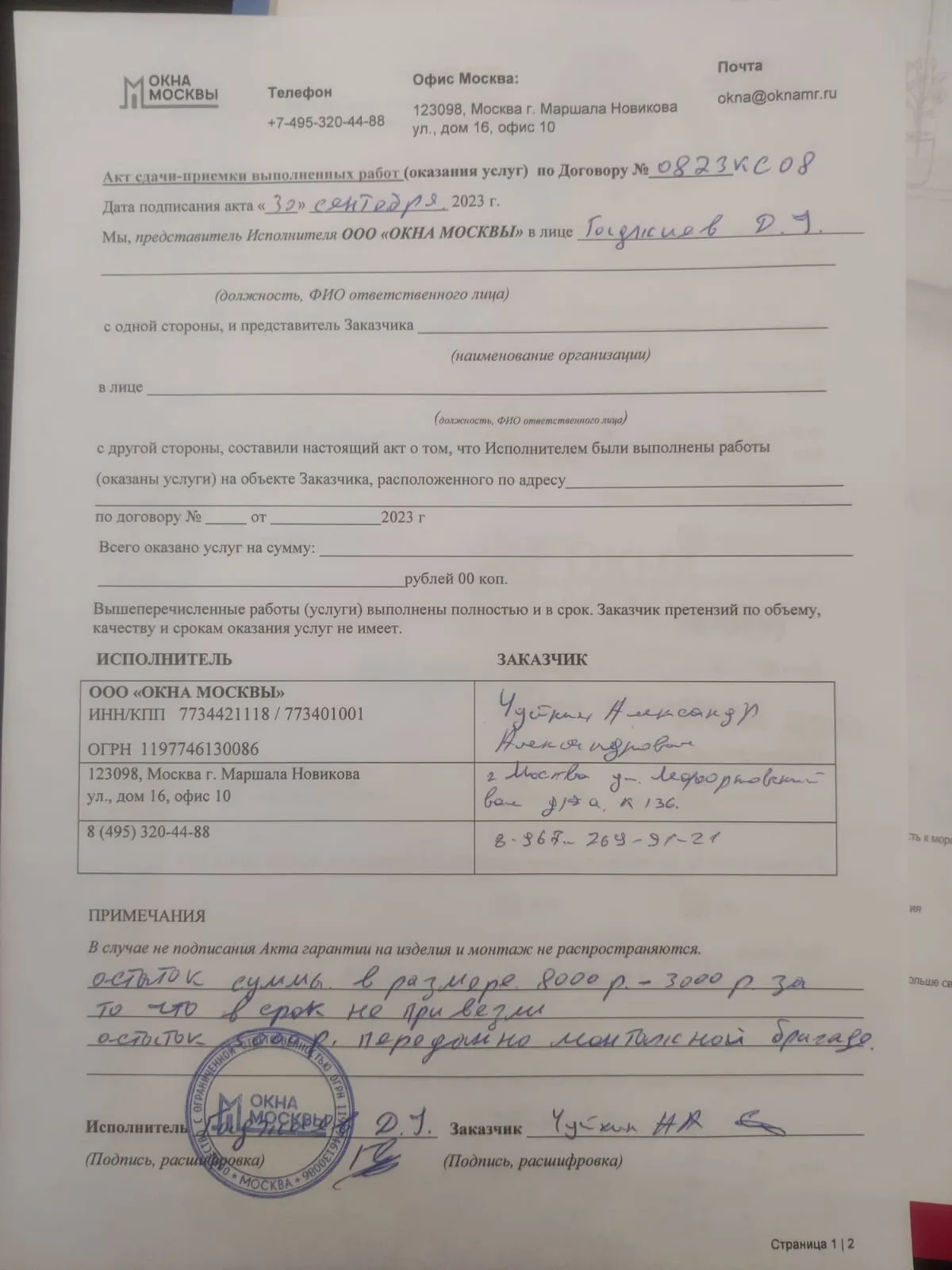Выполненные работы