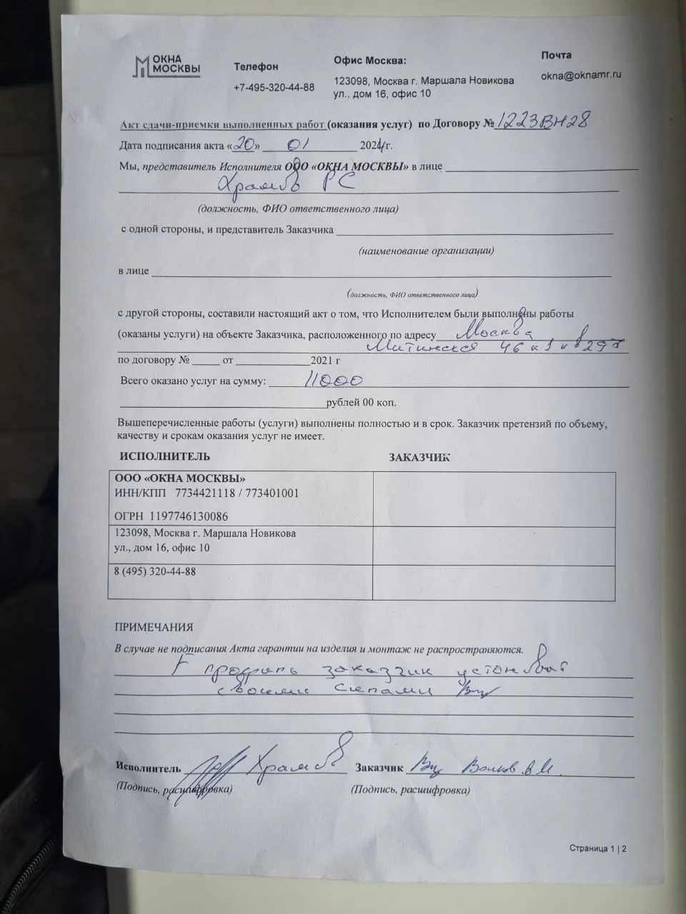 Выполненные работы