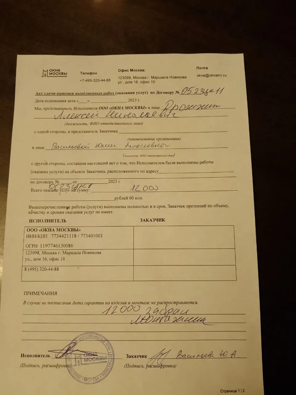 «Всё доставлено и установлено в срок. Спасибо.»