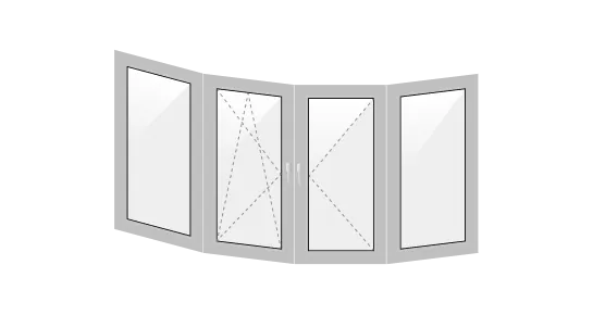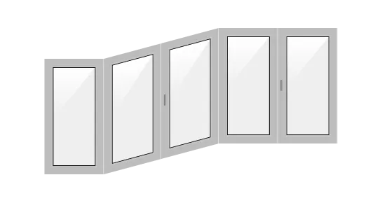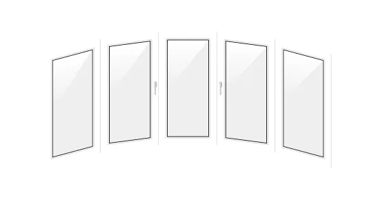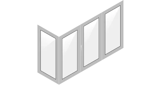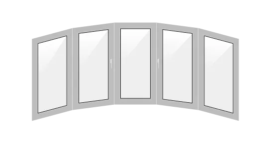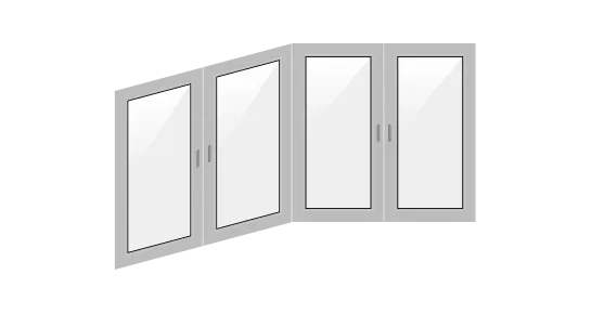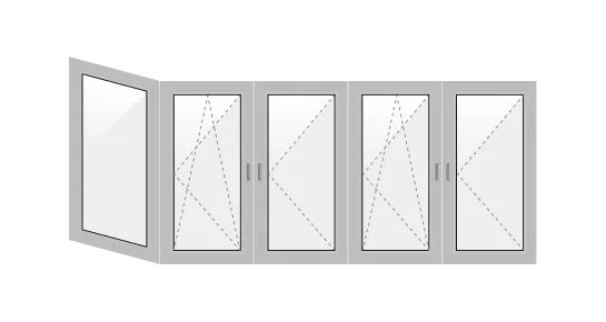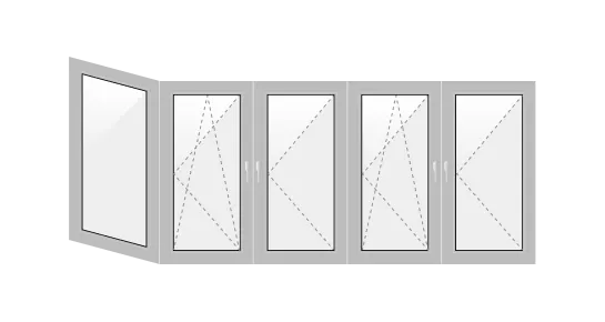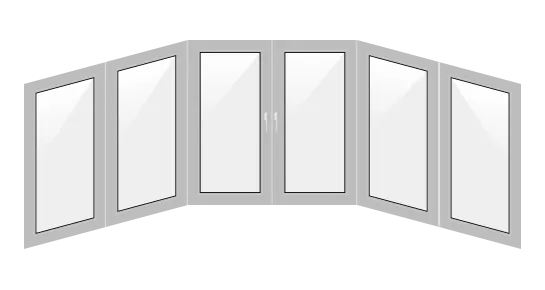 - п-образное. Оконный блок занимает как лицевую часть, так и боковые стороны;