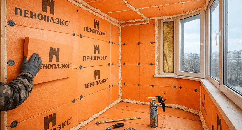 Пеноплекс — один из самых эффективных материалов для утепления балкона и лоджии под ключ. Экструдированный пенополистирол отличается высокой плотностью, минимальной теплопроводностью и долговечностью, что делает его лидером среди решений для теплоизоляции балкона.