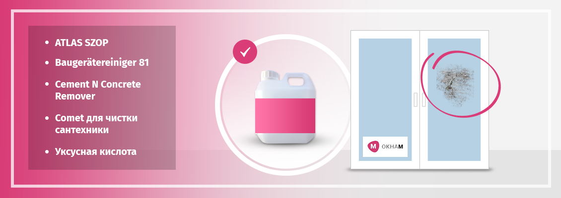 Когда оштукатуривают и выравнивают стены, ПВХ-рамы и стеклянные пакеты защитить от пятен цементного раствора очень сложно. Очищаются они с большим трудом. Вам могут помочь:
